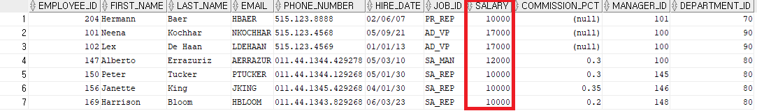 salary 값이 10000, 12000, 17000에 해당하는 데이터만 가져온 것을 확인할 수 있습니다.