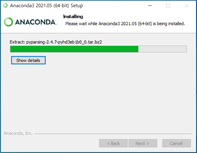 위 설정은 기본 값으로 그대로 준 채 Install을 진행해줍니다. PATH를 바로 설정해 줄 것인지에 대한 부분은 되도록이면 체크를 하지 않는 것을 권장 드리는데, 아나콘다를 삭제하거나 다시 설치하는 경우 PATH의 충돌 문제가 발생해서 오류가 나는 케이스가 있기 때문입니다.