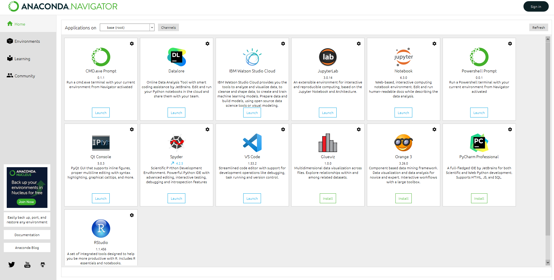 2. 아나콘다 네비게이터(Anaconda Navigator)를 통해 가상환경 생성하기